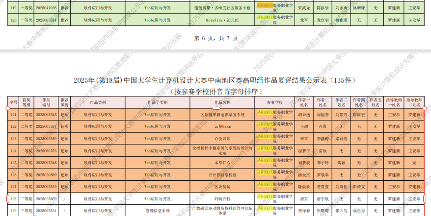 近日,从2025年(第18届)中国大学生计算机设计大赛中南地区组委会传来喜讯:由我院罗建新、王安举老师指导的参赛队员提交的11项参赛作品,全部获奖。其中,获一等奖2项,二等奖7项,三等奖2项。获奖名单如下:
